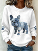 Femmes Denim Patchwork Français Bulldog Motif Waffle Sweatshirt