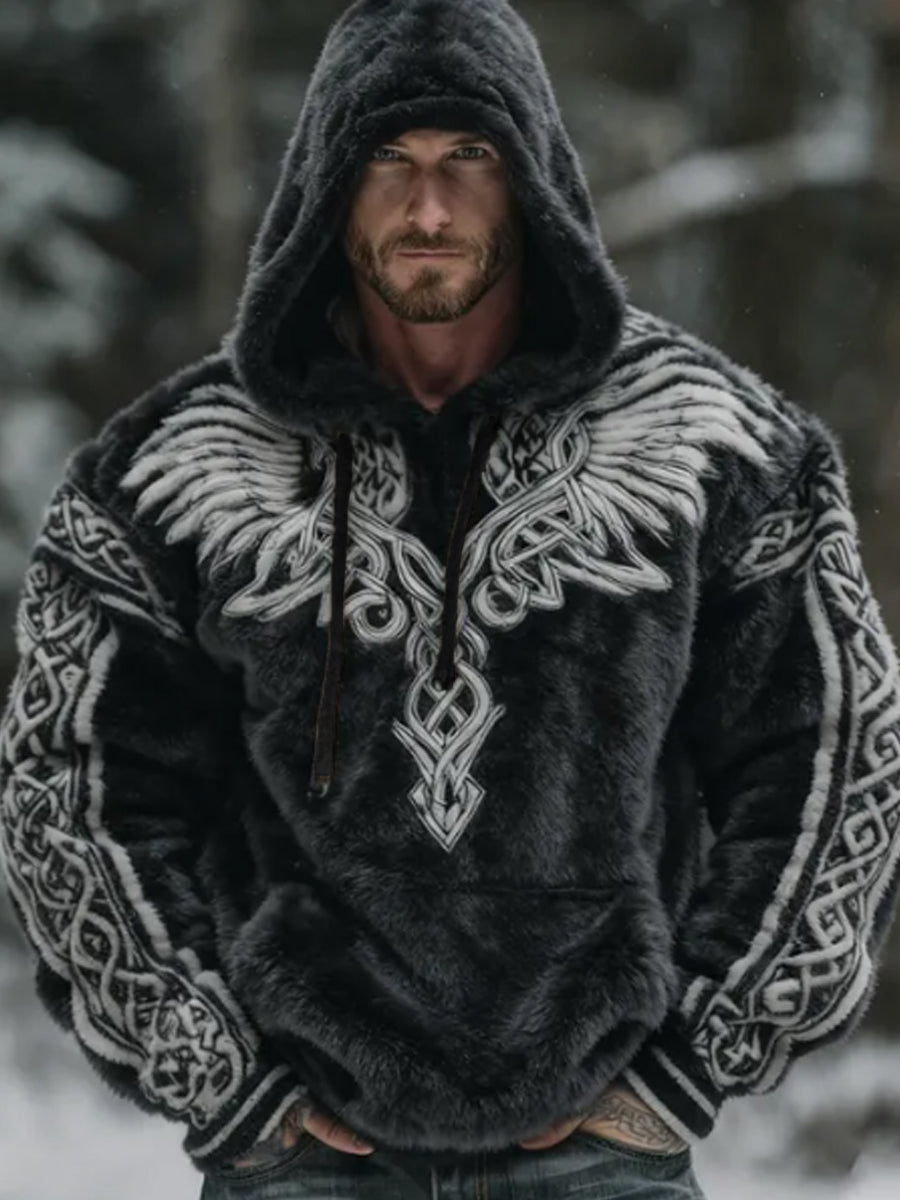 Sweat à capuche confortable en flanelle en peluche Viking Celtic Wings pour hommes